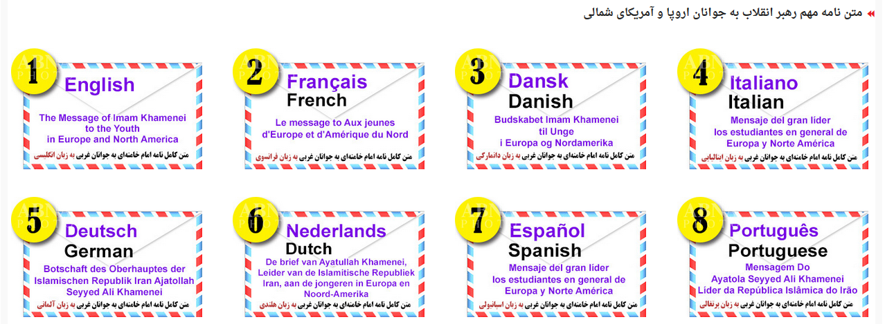 برای مطالعه نامه حضرت آقا به اینجا کلیک کرده و  نامه به زبان فارسی را انتخاب کنید